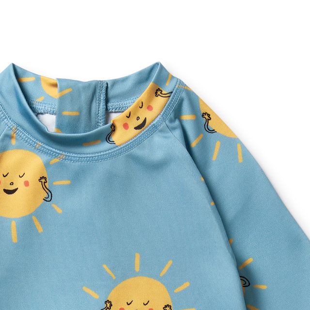 Keep your little one protected at the pool or beach with this long-sleeved boy leg swimsuit. Made from recycled polyester and rated UPF 50+, it offers both environmental sustainability and sun protection. The zip opening on the back with a self-fabric puller adds convenience to this cute and functional swimwear.