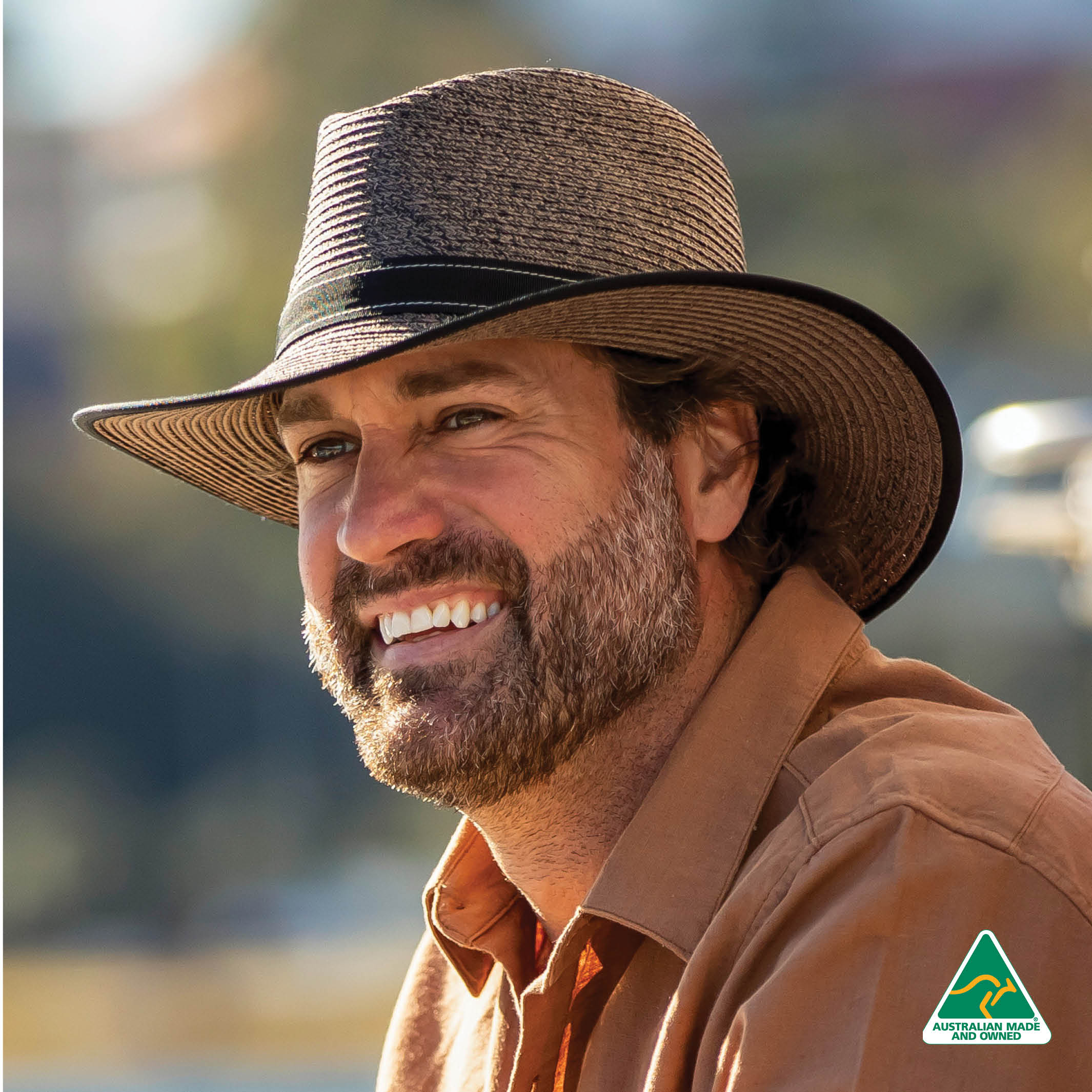 In rich, Burnt Clove the Durham Fedora provides UPF50+ sun protection with its 8cm brim which is edged in deep chocolate. Handmade in Australia, the 10cm-11cm crown is surrounded with a deep chocolate tonal headband. This trim has been finished top and bottom, with custom, contrasting border stitching. Durham provides the ultimate in travel-friendly performance.