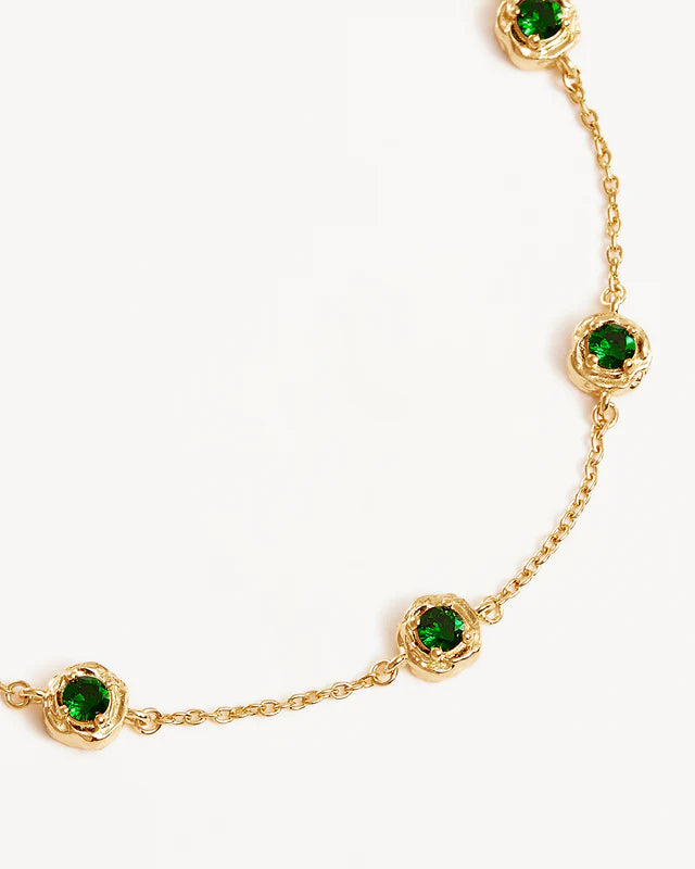 The 18k Gold Vermeil Depth of You Bracelet reflects the profound depths of the ocean, encouraging inward reflection and a bringing a sense of calm. Set with deep green cubic zirconia crystals in claw settings, this delicate bracelet is designed to evoke a sense of mystery and introspection.