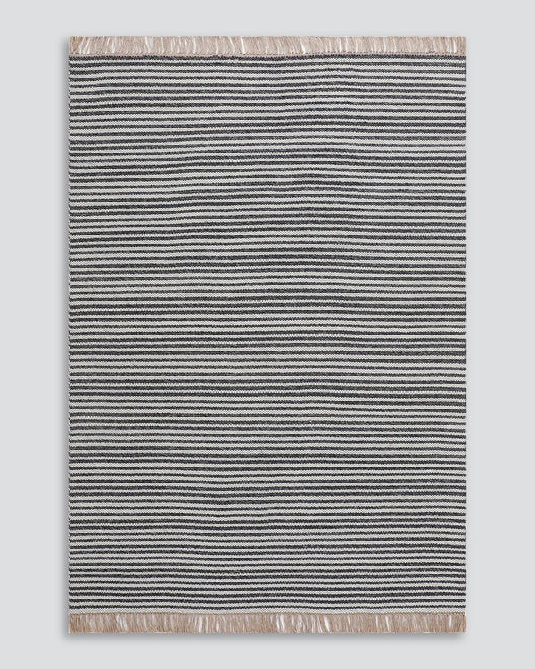 Revitalise your outdoor space with this contemporary and fully reversible floor rug. Soft underfoot, the handcrafted double-weave stripe design looks stunning on any surface and can be used indoors and outdoors interchangeably. Featuring a heavy stripe on one side, and a finer design on the other, the Summit is finished with a relaxed, hand-knotted fringe.