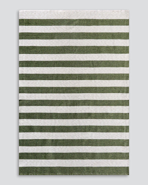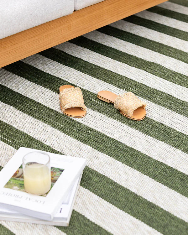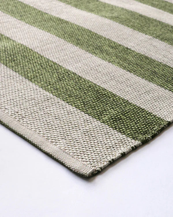 Revitalise your outdoor space with this contemporary and fully reversible floor rug. Soft underfoot, the handcrafted double-weave stripe design looks stunning on any surface and can be used indoors and outdoors interchangeably. Featuring a heavy stripe on one side, and a finer design on the other, the Summit is finished with a relaxed, hand-knotted fringe.