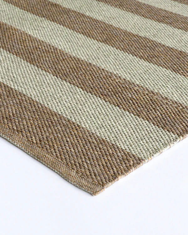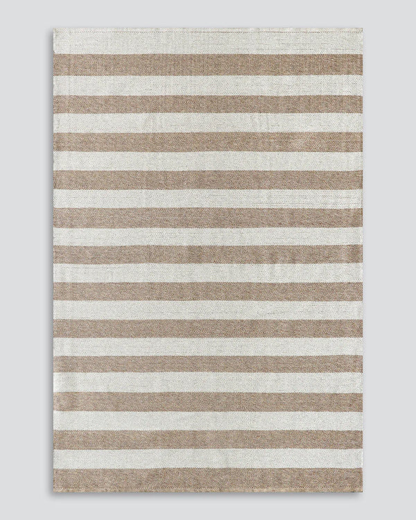 Revitalise your outdoor space with this contemporary and fully reversible floor rug. Soft underfoot, the handcrafted double-weave stripe design looks stunning on any surface and can be used indoors and outdoors interchangeably. Featuring a heavy stripe on one side, and a finer design on the other, the Summit is finished with a relaxed, hand-knotted fringe.