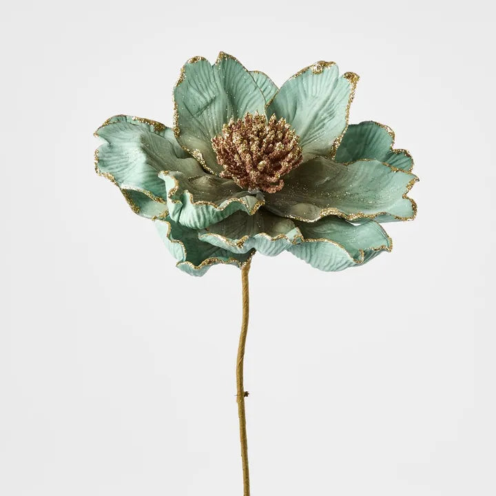 Add a touch of sparkle to your festive décor with our Glitter Edged Flower in soft seafoam green. Perfect for Christmas trees, wreaths, or table arrangements, it brings a subtle shimmer and elegant charm to your holiday styling.