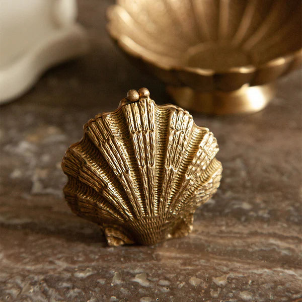 This brass trinket box is shaped like a delicate clam shell, bringing a touch of seaside nostalgia. Hand-cast with beautiful detailing, it opens to reveal a petite space perfect for keeping tiny treasures safe.