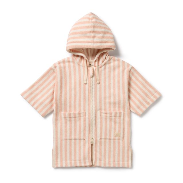 Wrap your little one in comfort with our super absorbent hooded towel. Made from organic cotton terry towelling with a stylish two-tone strawberry wave stripe, it’s soft, cosy, and perfect for drying off after a swim. Featuring a zip-up front and two patch pockets, it’s easy to throw on and keeps your little one warm, dry, and ready for the next adventure.
