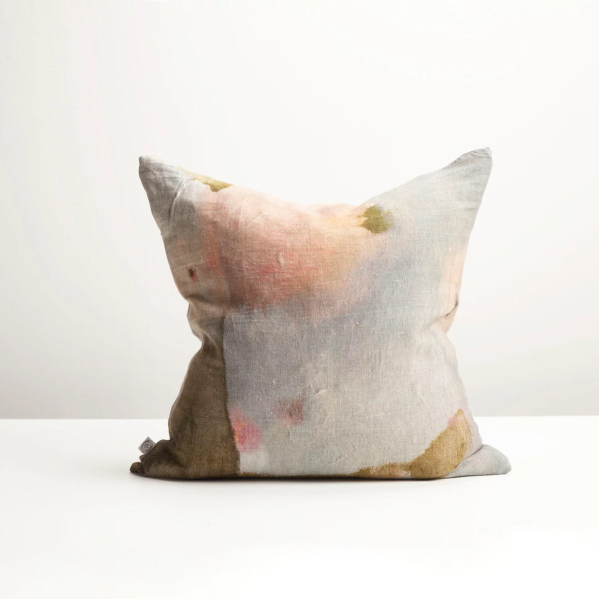 Created in collaboration with Auckland artist Melanie Field. Gentle Dawn is a captivating abstract landscape in soft blue, green and pink tones.